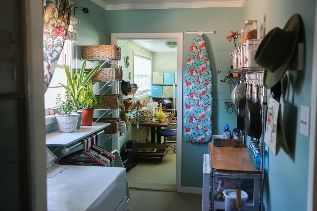 Hope you enjoyed the tour! And I hope that if there’s a room in your house that you use all the time, but simultaneously makes you feel depressed by being in it, that you would at least reorganize! I really didn’t spend much on all this – I had all the storage units and I just bought the paint and the laundry shelves, which cost about $25 total. Just rearranging things and painting the walls can make a world of difference!