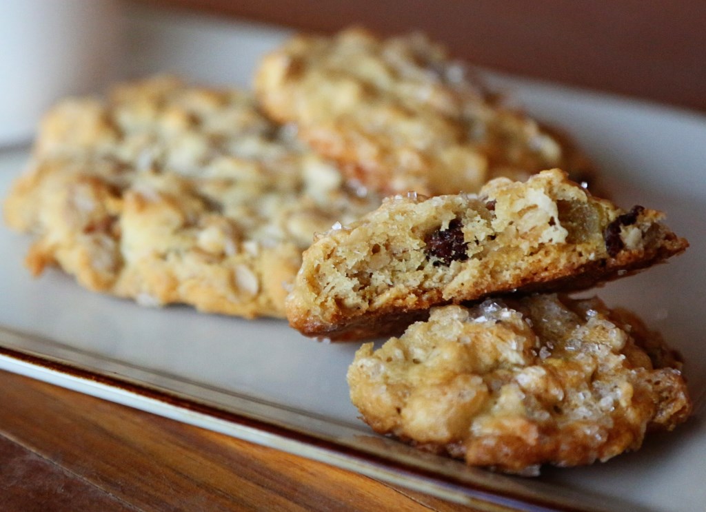 But today is about coming home. Coming home to familiarity, to the warmth of being in your own space with the view out the window you remember (let’s not talk about what our yard looks like after 2 weeks of neglect). When I think about coming home, I think about oatmeal cookies. They scream comfort and familiarity and nourishment. And the recipe today is kind of perfect. The original recipe card I had is from a generic set of cookie recipes that came in a funny little box that just says COOKIES. Each card is a different recipe. It’s a pretty fun jumbo-sized deck of cards for Olive to play with and I can imagine when she gets older, picking out a card for our weekend baking adventures. I modified the recipe because it seemed extremely void of liquid. The original recipe didn’t call for any egg, so if you want to leave it out, know that you’ll just have to work the dough a little more so that it holds together because it’s pretty crumbly. Either modification is good, but the addition of the egg makes a softer fluffier cookie, which worked out really well for my gap-toothed toddler.