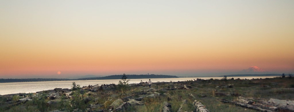 There were long conversations sitting on logs overlooking the water and the amazing view of Mt. Rainier in the background with the glorious pink moon that was settling on the water as a backdrop for our meal together.