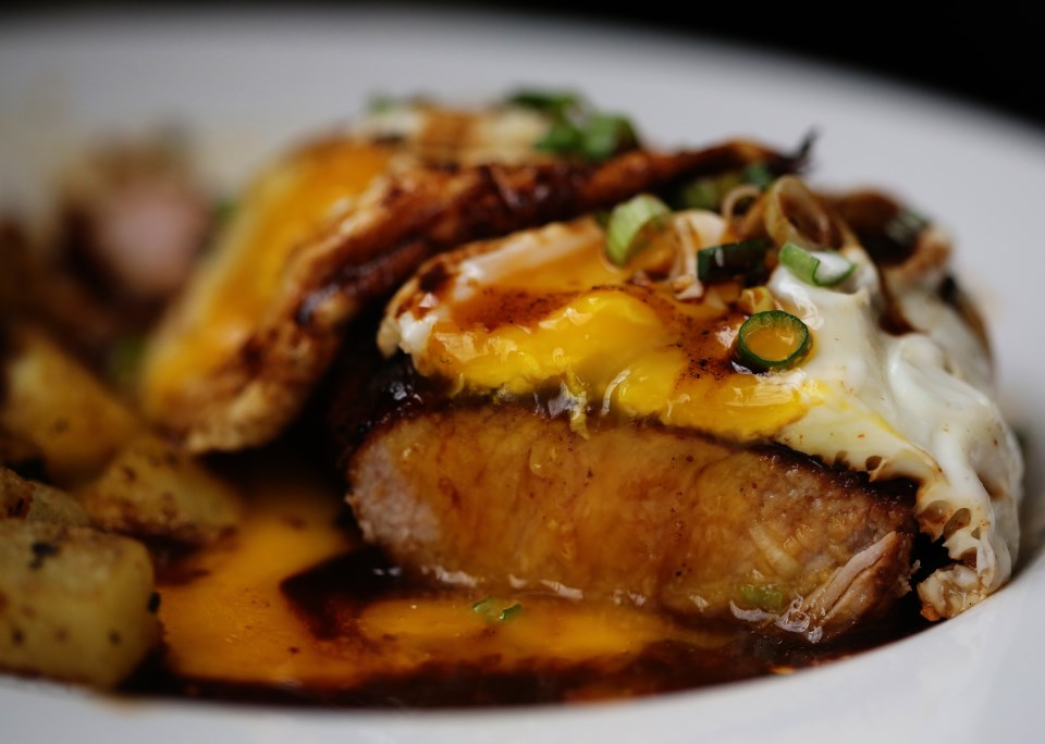 Glazed Pork Chops with Home Fries and a Fried Egg – The Ultimate Breakfast for Dinner