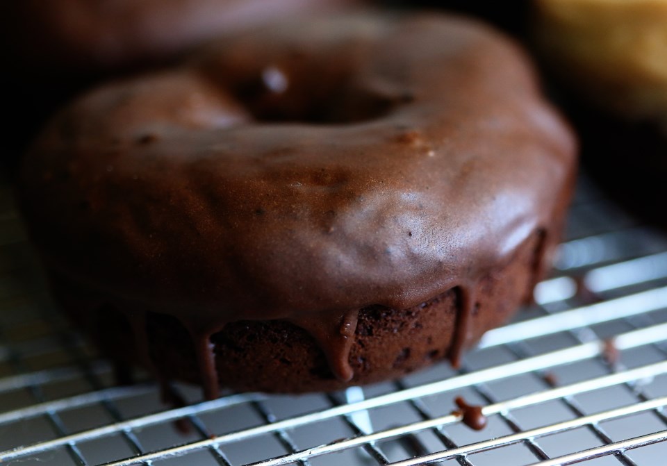 Preheat the oven to 350°F. Lightly grease the wells of two standard doughnut pans. If you don’t have two pans, simply bake the batter in two batches. In a large mixing bowl, whisk together the cocoa, flour, sugar, baking powder, espresso powder, cinnamon, cayenne, baking soda, salt, and chocolate chips. Set aside.  (I added those other flavors because I’m addicted to Mexican chocolate).  In a large measuring cup or medium-sized mixing bowl, whisk together the eggs, milk, vanilla and vinegar.