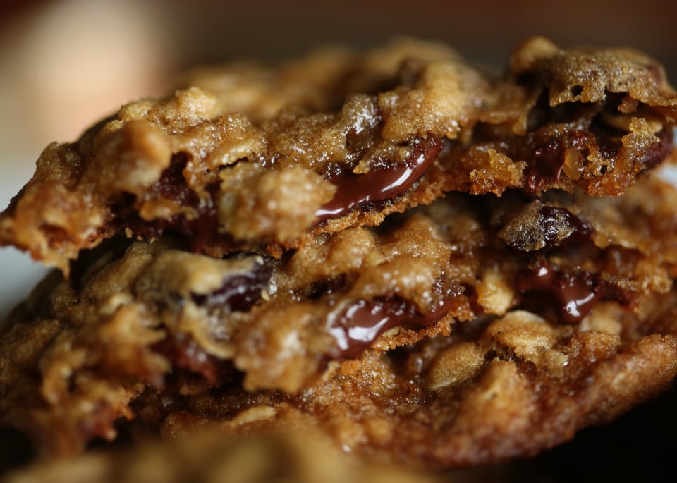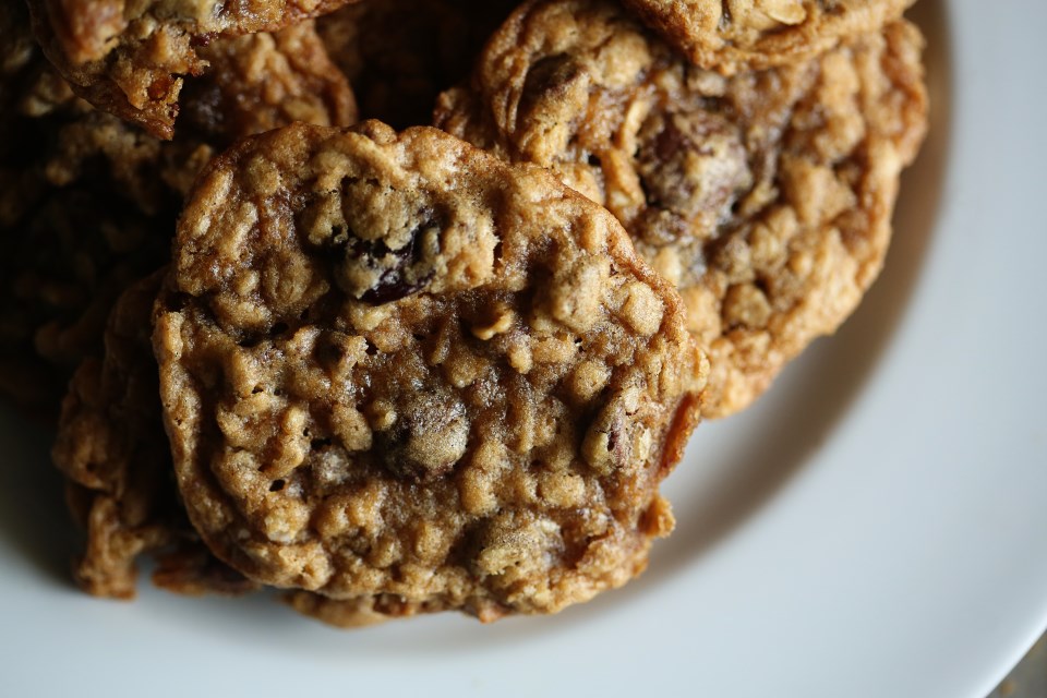 Sift the flour, baking powder and soda, salt and cinnamon together. Mix the brown sugar and butter together until creamy. Add the eggs, one at a time, alternating with the flour mixture. Mix the cooked oatmeal until just combined.