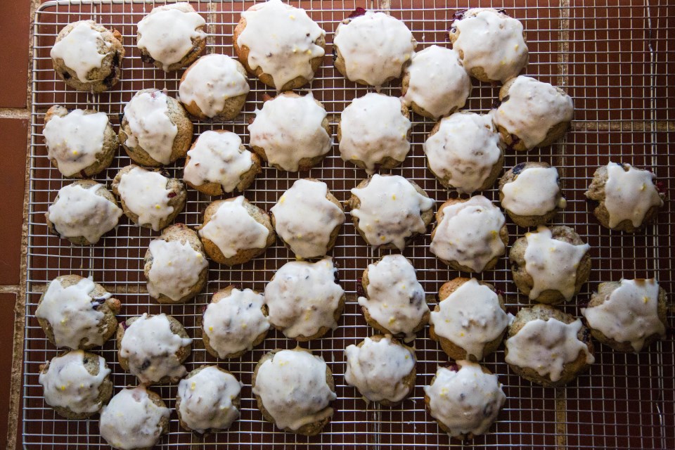 Add the cream to your powdered sugar until it forms a nice paste. You may not use the entire quarter cup. Add the zest and lemon juice and vanilla and then if you think it needs to be thinner, add more cream. The consistency should be like thin pancake batter. Gradually add pinches of salt, stirring well after each pinch, tasting along the way until the flavors start to sing a little louder. Salt is something I add to all my icings and glazes and it makes such a difference!