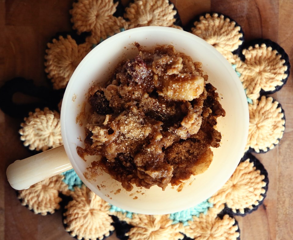I love the blogging world.  Especially the FOOD blogging world.  So many people in so  many different parts of the world, all coming together over good recipes  that bring comfort and ease to the day.  I  did a quick search for oatmeal recipes last week, because I had purchased a gigantor box of rolled oats and felt compelled to do something new with it, besides my same ol’ breakfast options.  Blogger Elsa of The Whinery (great blog name) came up in my search with her amazing Peanut Butter Banana Oatmeal (say  no more) and since I had every single item the recipe called for, I hopped to it!  It was simply amazing.  Tasted like an oatmeal cookie in a bowl. With cream.  I swapped out cherries for cranberries and dusted the top with extra demerara sugar (raw), which gave everything a lovely molasses flavor.  I’m in love.  I’ll be making this again, for sure.  It was so easy!  I think it would work great with any milk and I thought it needed an extra splash of milk to make it palatable for my wee one.  I could have eaten the entire thing out of the pan as it was.  Thank you, Elsa, for making the world just a little bit sweeter with this recipe!