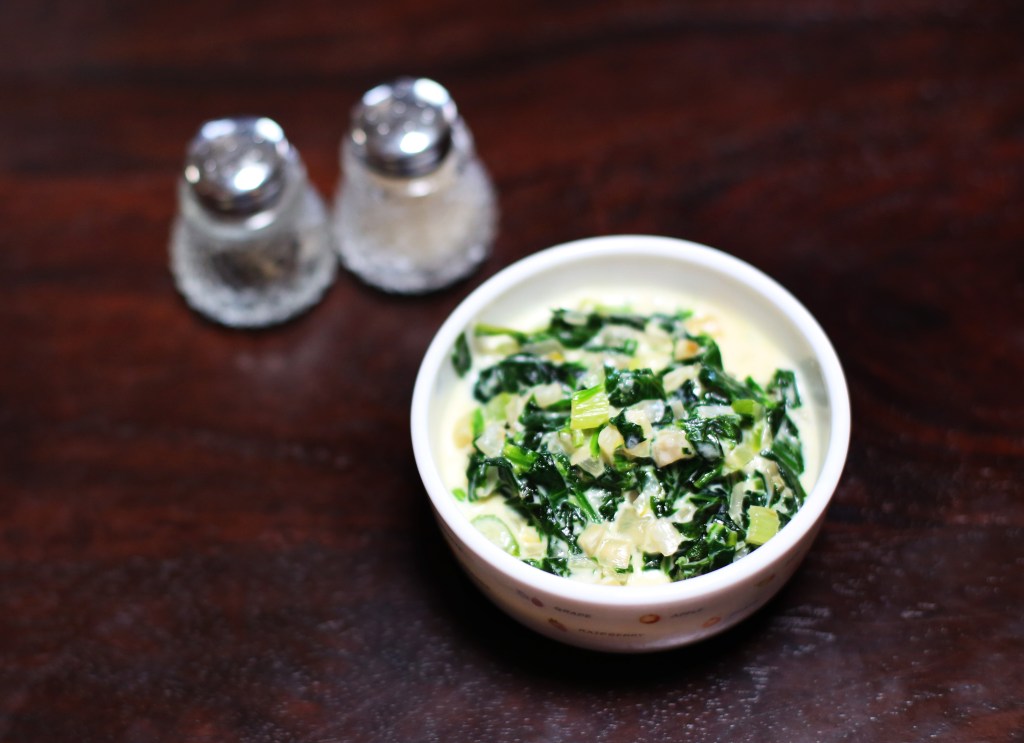 This is, by far, one of my favorite side dishes, and one of my favorite ways to cook/eat/enjoy spinach.  Matt and I found this recipe from watching an episode of Martha Stewart Living, where the great Jean-Georges Vongerichten cooked his amazing chicken and potatoes (where the potatoes are better than the chicken) and served this spinach on the side.  What a warm, comforting, indulgent family meal!  We have made both of these recipes multiple times over the past few years and each time, they feel new and exciting.  The spinach and basil would be absolutely perfect at Thanksgiving as a side dish.  There’s something about the basil that adds so much depth of flavor to the dish.  The cream helps with that, too…