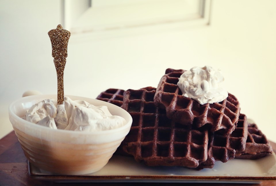 Parks and Recreation was one of our favorite shows of all time. We were sad to see it end a few weeks ago and had to cook something special for the finale. I debated quite a lot about what to cook. I could’ve done a plain hamburger inspired by the episode where Ron and Chris battle it out in a food war. We thought about doing bacon wrapped shrimp served with all the bacon and eggs the store had to offer, but I figured that might be a tad wasteful. And so we settled on waffles, as Leslie Knope would’ve wanted. I decided to do a savory waffle with a side of bacon and plenty of melted butter and Mike’s Hot Honey on top. Mike’s makes some amazingly spicy and delicious honey that we love putting on our pizza crusts and it’s really good on so many things like buffalo wings or smoked sausages, but it was especially good on top of this cheesy waffle!
